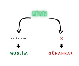 Bunu da əlavə edək ki; İmandan qaynaqlanmayan əməlin Allah qatında qiyməti olmaz. Ancaq imanın şərtlərini özündə daşıyan biri isə, əməli olmasa da mömindir.[15] Bilavasitə, “mömin” olmaq “Müslüm” olmaqdan daha geniş qavramlardır. Yazılanların daha yaxşı başa düşülməsi üçün aşağıdakı tablonu təqdim edirik: