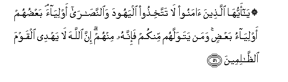 Cavab: Allah Təala, Maidə surəsinin 51-ci ayəsində: “Ey möminlər! Yəhudi və Xristianlara yoldaş olmayın. Onlar bir birinə yoldaşdır. Sizdən kim onlara yoldaşlıq edərsə, o da onlardandır. Allah zalım tayfanı düz yola yönəltməz!”- buyurmaqdadır. Eyni surənin 55-ci ayəsində də: “Sizin himayədarınız yalnız Allah, Onun Elçisi və iman gətirənlərdir. Onlar (Allaha) boyun əyərək namaz qılır və zəkat verirlər.”- buyurulur.